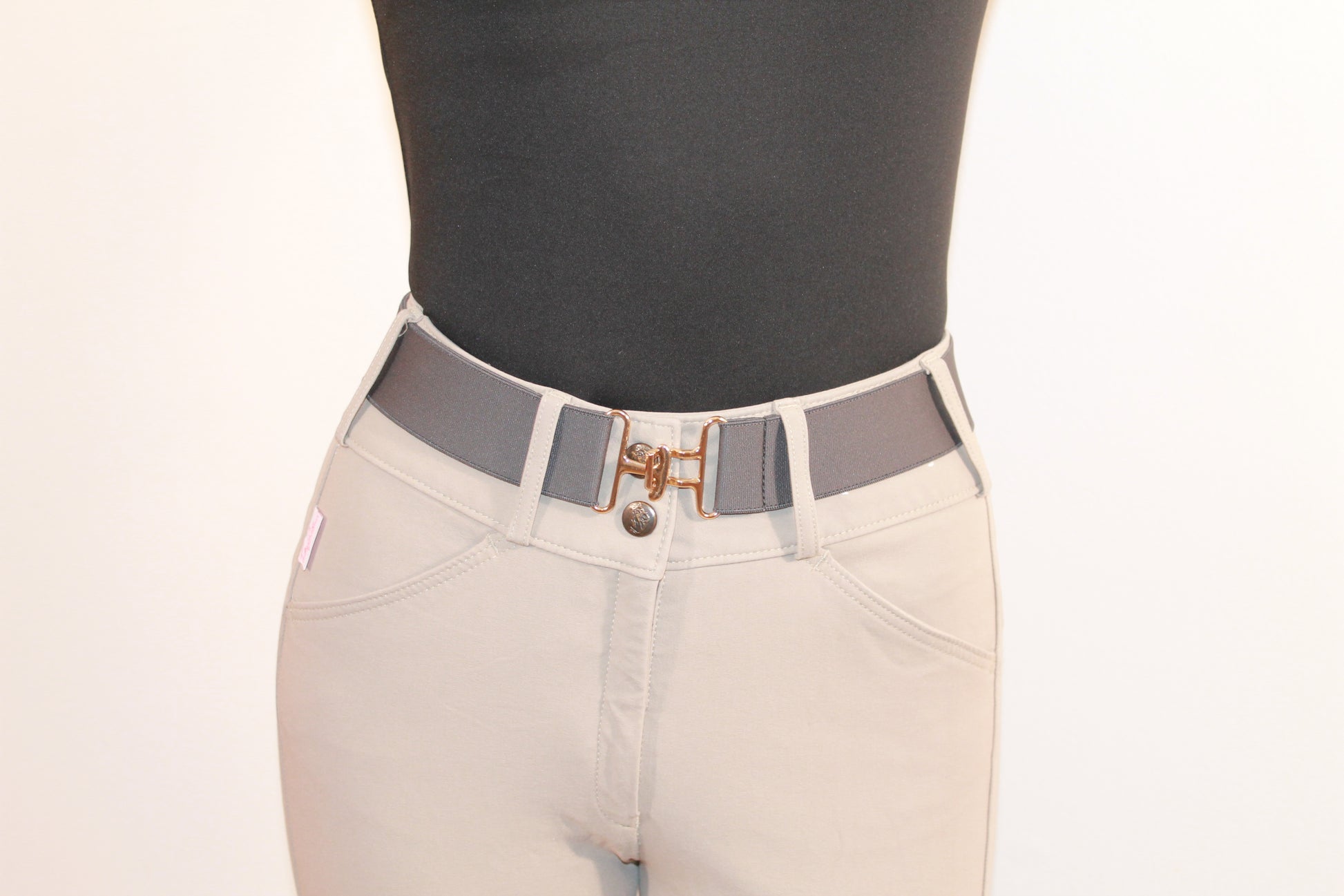 Ladies equestrian belt. 1.5" grey surcingle belt. Gold hardware. Adjustable one size fits most kids and adults.