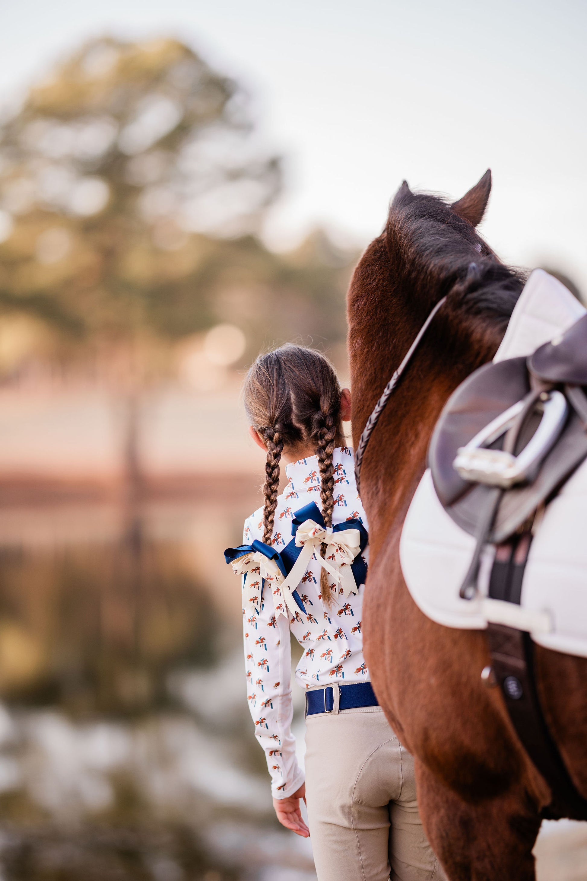 Youth Sun Shirt with jumping horse pattern, designed for comfort, protection, and flair. In our new and improved, matte fabric. Long sleeve with 1/4 zip with our signature gold snaffle zip. Shirt has white mesh under arms to keep you cool.
